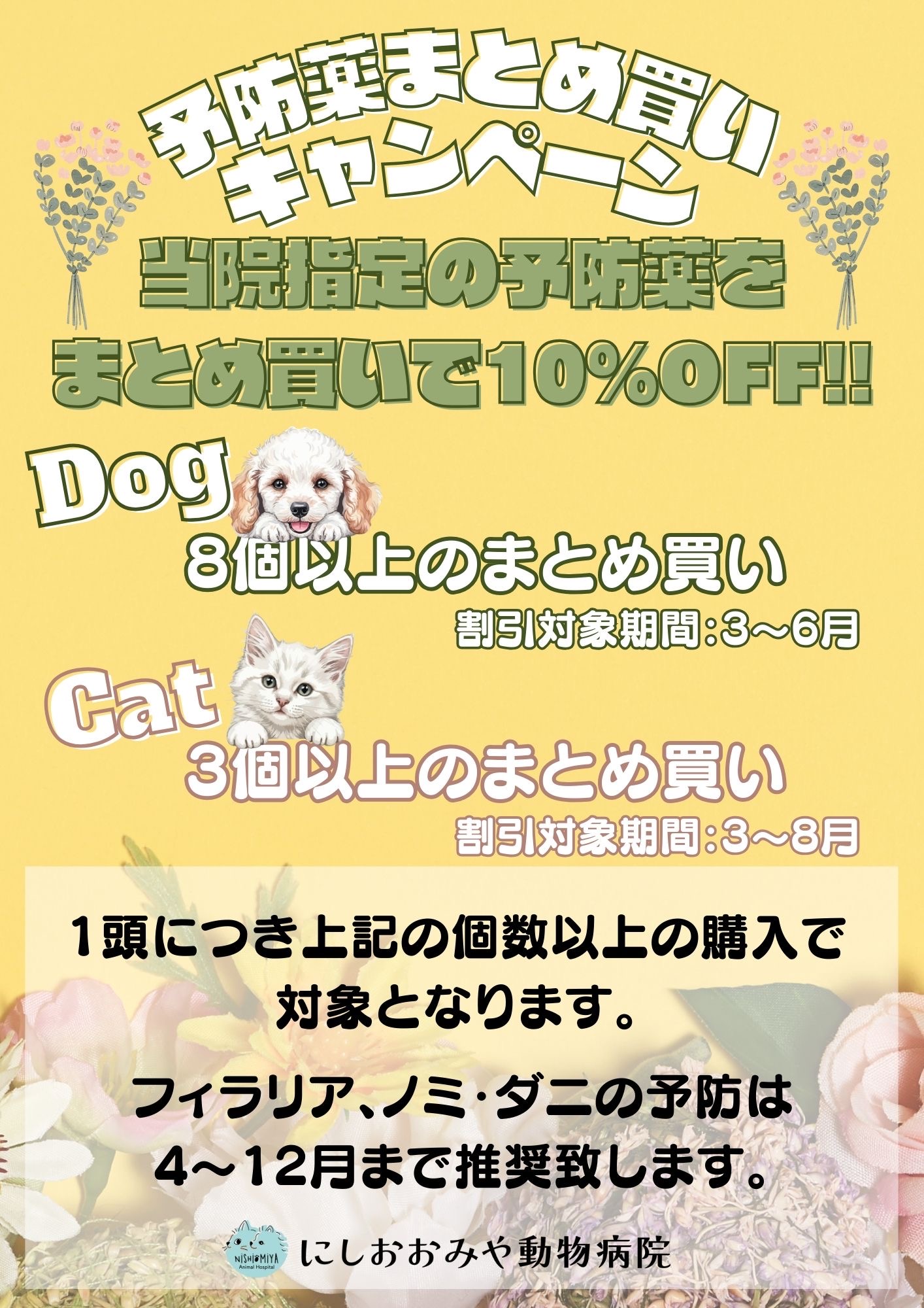 3月1日よりフィラリア・ノミダニ予防薬まとめ買いキャンペーンを実施いたします!